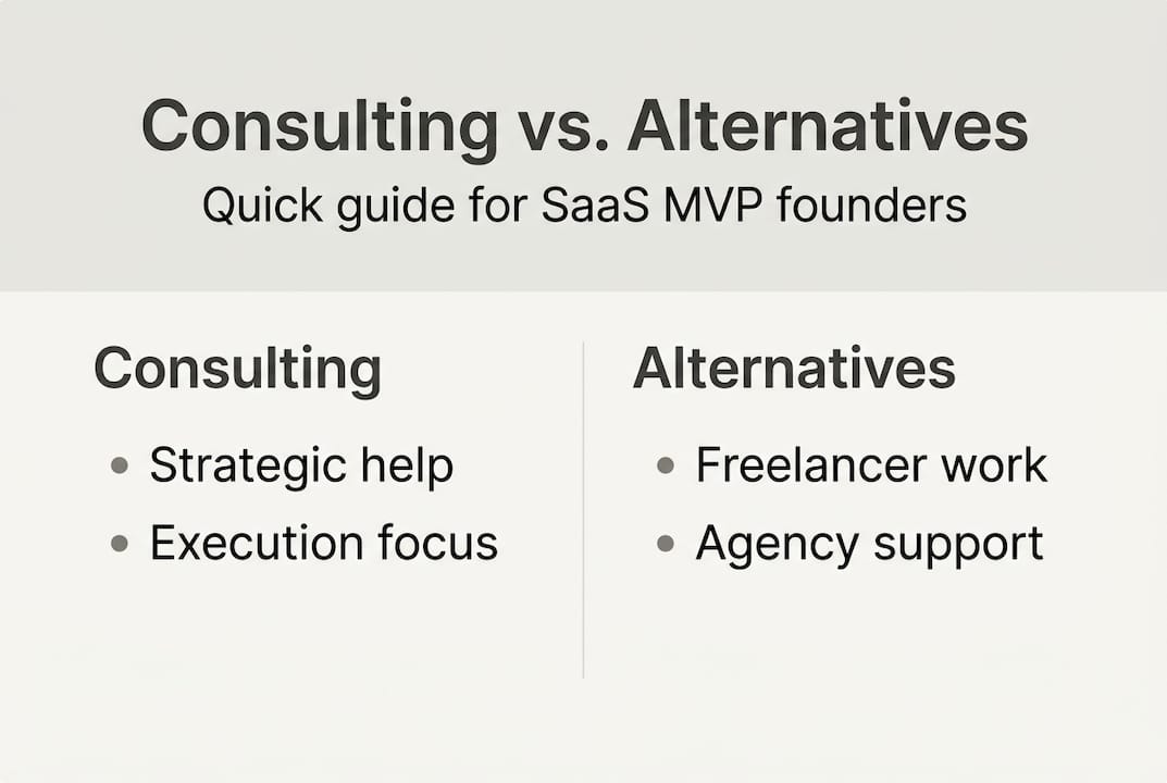 The word "consultant" gets used loosely. In the SaaS context, a consultant is someone who provides both strategic direction and technical execution, not just one or the other. That distinction matters enormously for non-technical founders who often cannot evaluate technical trade-offs on their own. As one honest breakdown puts it, consulting offers strategy and execution while freelancers are mostly execution-focused. That gap in strategic input is exactly where early MVPs fall apart.